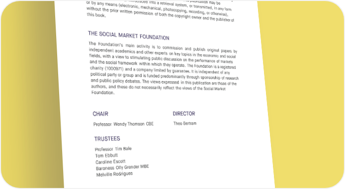 SOCIAL MARKET FOUNDATION FIRST PUBLISHED BY The Social Market Foundation, December 2024 Third Floor, 5-6 St Matthew Street, London, SW1P 2JT Copyright © The Social Market Foundation, 2024 The moral right of the authors has been asserted. All rights reserved. Without limiting the rights under copyright reserved above, no part of this publication may be reproduced, stored or introduced into a retrieval system, or transmitted, in any form or by any means (electronic, mechanical, photocopying, recording, or otherwise), without the prior written permission of both the copyright owner and the publisher of this book. THE SOCIAL MARKET FOUNDATION The Foundation’s main activity is to commission and publish original papers by independent academics and other experts on key topics in the economic and social fields, with a view to stimulating public discussion on the performance of markets and the social framework within which they operate. The Foundation is a registered charity (1000971) and a company limited by guarantee. It is independent of any political party or group and is funded predominantly through sponsorship of research and public policy debates. The views expressed in this publication are those of the authors, and these do not necessarily reflect the views of the Social Market Foundation. CHAIR DIRECTOR Professor Wendy Thomson CBE Theo Bertram TRUSTEES Professor Tim Bale Tom Ebbutt Caroline Escott Baroness Olly Grender MBE Melville Rodrigues 2