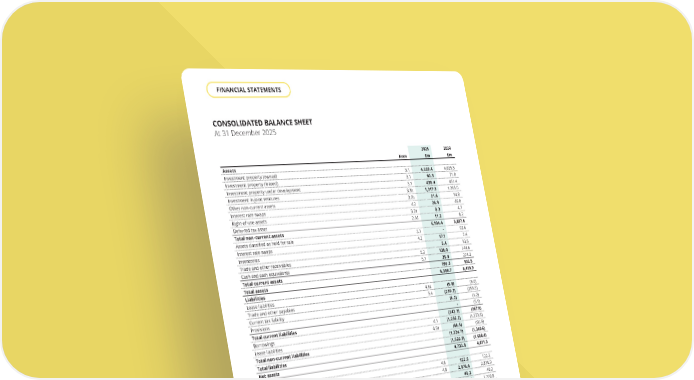 CONSOLIDATED BALANCE SHEET At 31 December 2025 Note 2025 £m Assets Investment property (owned) 3.1 4,220.4 Investment property (leased) 3.1 60.3 Investment property under development 3.1 438.4 Investment in joint ventures 3.3b 1,317.3 Other non-current assets 3.2b 21.6 Interest rate swaps 4.2 26.9 Right-of-use assets 3.2a 8.3 Deferred tax asset 2.5d 11.2 Total non - current assets 6,104.4 Assets classified as held for sale 3.1 - Interest rate swaps 4.2 17.1 Inventories 5.4 Trade and other receivables 5.2 138.0 Cash and cash equivalents 5.1 35.8 Total current assets 196.3 Total assets 6,300.7 Liabilities Lease liabilities 4.6a (5.8) Trade and other payables 5.4 (230.2) Current tax liability (6.2) Provisions - Total current liabilities (242.2) Borrowings 4.1 (1,256.2) Lease liabilities 4.6a (68.5) Total non - current liabilities (1,324.7) Total liabilities (1,566.9) Net assets 4,733.8 Equity Issued share capital 4.8 122.5 Share premium 4.8 2,876.6 Merger reserve 40.2 Retained earnings 1,693.8 Hedging reserve 0.7 Equity attributable to owners of the Parent Company 4,733.8 The financial statements of The Unite Group PLC, registered number 03199160, were approved and authorised for issue by the Board of Directors on 24 February 2026 and were signed on its behalf by: Joe Lister Mike Burt Director Director 2024 £m 4,025.5 71.8 451.4 1,265.0 14.8 46.0 4.7 8.2 5,887.4 92.6 7.4 13.6 144.6 274.3 532.5 6,419.9 (6.0) (255.5) (1.2) (5.1) (267.8) (1,273.8) (66.8) (1,340.6) (1,608.4) 4,811.5 122.2 2,876.9 40.2 1,770.8 1.4 4,811.5 THE UNITE GROUP PLC Annual Report and Accounts 2025 148 FINANCIAL STATEMENTS