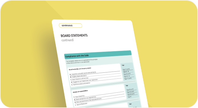 THE UNITE GROUP PLC Annual Report and Accounts 2025 82 BOARD STATEMENTS continued Compliance with the Code The Company’s disclosures on its application of the principles of the Code can be found in the table below: Board leadership and Company purpose A. Long-term sustainable success and contribution B. Purpose, values and culture C. Board decisions and outcomes D. Engagement with shareholders and stakeholders E. Workforce policies and practices Page Pages 10 and 90 Pages 83 - 86 Pages 86 and 90 Pages 90 - 92 Pages 10 and 86 Division of responsibilities F. Board leadership G. Board composition and responsibilities H. Role and commitment of Non-Executive Directors I. Board effectiveness Page Pages 83 and 87 Pages 88 and 89 Pages 88 and 89 Page 99 Composition, succession and evaluation J. Board appointments, succession plans and diversity K. Board experience, skills and knowledge L. Board evaluation Page Pages 100 - 102 Pages 76 and 88 Page 99 Audit, risk and internal control M. Internal and external audit – independence and effectiveness N. Fair, balanced and understandable O. Risk management and internal controls framework Page Pages 106 and 107 Page 105 Pages 52 and 106 Remuneration P. Remuneration policies and practices – long-term strategy and success Q. Development of policy on remuneration R. Judgement and discretion Page Pages 113 - 131 Pages 115 and 129 Pages 113 GOVERNANCE