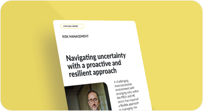 RISK MANAGEMENT GOVERNANCE The Board maintains oversight of risk. It maintains a robust risk management framework and internal control system. The Audit & Risk Committee supports the Board by receiving assurance reporting on risk to our objectives from Group Internal Audit twice yearly, reviewing the effectiveness of risk management and internal control processes. Our risk management framework enables the Board to clearly identify both opportunities and risks, assess our risk profile and set risk appetite, ensuring risks are managed and mitigated transparently and effectively. This includes being agile and resilient to macroeconomic and geopolitical impacts. A challenging macroeconomic environment with emerging risks within the PBSA and HE sector has required a flexible approach to managing risk. This agile approach has enabled us to make the most of opportunities. MIKE BURT CHIEF FINANCIAL OFFICER Navigating uncertainty with a proactive and resilient approach THE UNITE GROUP PLC Annual Report and Accounts 2025 52 STRATEGIC REPORT