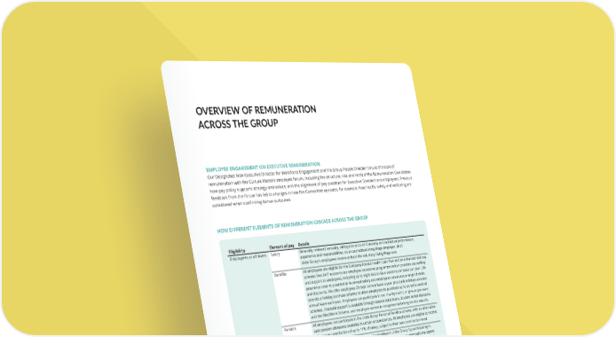 OVERVIEW OF REMUNERATION ACROSS THE GROUP EMPLOYEE ENGAGEMENT ON EXECUTIVE REMUNERATION Our Designated Non-Executive Director for Workforce Engagement and the Group People Director discuss the topic of remuneration with the Culture Matters employee forum, including the structure, role and remit of the Remuneration Committee; how pay policy supports strategy and values; and the alignment of pay practices for Executive Directors and employees. Previous feedback from the forum has led to changes in how the Committee operates, for example, how health, safety and wellbeing are considered when confirming bonus outcomes HOW DIFFERENT ELEMENTS OF REMUNERATION CASCADE ACROSS THE GROUP Eligibility Element of pay Details Employees at all levels Salary Generally reviewed annually, taking into account Company and individual performance, experience and responsibilities. As an accredited Living Wage employer, all of Unite Group’s employees receive at least the voluntary Living Wage rate. Benefits All employees are eligible for the Company-funded Health Cash Plan and an enhanced sick pay scheme; free 24/7 access to our employee assistance programme which provides counselling and support to employees, including up to eight face-to-face sessions per issue per year. Life assurance cover is provided at 4x annual salary and employees can access a range of deals and discounts. We offer employees 25 days’ annual leave a year plus bank holidays and also operate a holiday purchase scheme to allow employees to purchase up to an extra week of annual leave each year. Employees can participate in our charity match, or give-as-you-earn schemes. Financial support is available through season ticket loans, student rental discounts and the Bike2Work Scheme, and employee service is recognised with long-service awards. Pension All employees can participate in the Unite Group Personal Pension scheme, with an alternative cash pension allowance available in certain circumstances. All employees are eligible to receive a Company contribution of up to 11% of salary, subject to their own contribution level. SAYE We encourage all employees to become shareholders in Unite Group by participating in the SAYE scheme, under which participants save monthly over three years with the option to acquire shares at a discount at the end of the savings period. Currently c.17% of eligible employees participate in the SAYE. Annual bonus – cash All employees are eligible to participate in the annual bonus scheme, with outcomes based on Company performance. Maximum opportunities, performance measures and weightings vary by grade; however, metrics are broadly similar across all levels to support delivery of our strategy. For 2025, we introduced a new bonus scheme for our colleagues in city teams. Performance measures in this scheme are more connected to the work these teams do, and payments are made in both September and March, to make recognition more immediate. Executive Directors and other senior leaders Long-term incentive Executive Directors and other senior leaders may be invited to participate in the LTIP each year. Performance conditions are consistent for all participants, but award sizes vary. Heads of Department may be invited to participate in the Restricted Share Plan (RSP). This scheme is designed to support retention and to provide a clearer reward outcome for our senior leaders, with awards and the applicable deferral period being consistent for all. Executive Directors only Annual bonus – deferred Currently only Executive Directors are required to defer a proportion of their bonus into shares, which supports shareholder alignment. Shareholding guidelines While all employees are strongly encouraged to become shareholders to allow them to share in the success of the Group, currently only Executive Directors are subject to formal shareholding guidelines (both in-post and post-exit). THE UNITE GROUP PLC Annual Report and Accounts 2025 117