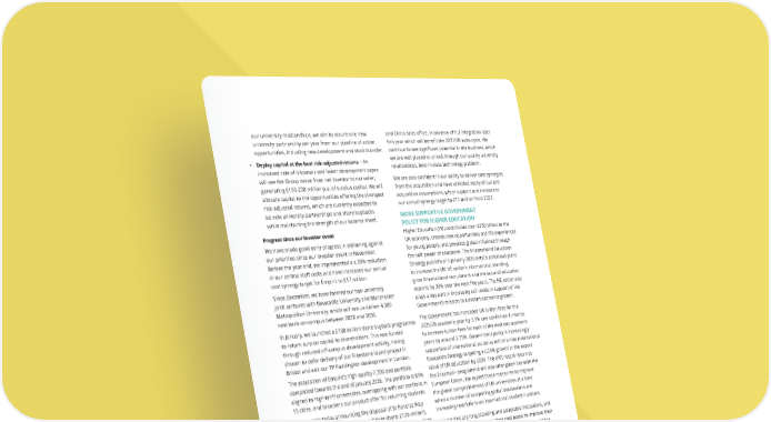 our university relationships, we aim to secure one new university partnership per year from our pipeline of active opportunities, including new development and stock transfer. • Deploy capital at the best risk-adjusted returns – An increased rate of disposals and lower development capex will see the Group move from net investor to net seller, generating £100-200 million p.a. of surplus capital. We will allocate capital to the opportunities offering the strongest risk-adjusted returns, which are currently expected to be new university partnerships and share buybacks while maintaining the strength of our balance sheet. Progress since our investor event We have made good early progress in delivering against our priorities since our investor event in November. Before the year end, we implemented a c.20% reduction in our central staff costs and have increased our annual cost synergy target for Empiric to £17 million. Since December, we have formed our two university joint ventures with Newcastle University and Manchester Metropolitan University, which will see us deliver 4,300 new beds on-campus between 2028 and 2030. In January, we launched a £100 million share buyback programme to return surplus capital to shareholders. This was funded through reduced off-campus development activity, having chosen to defer delivery of our Freestone Island project in Bristol and exit our TP Paddington development in London. The acquisition of Empiric’s high-quality 7,700-bed portfolio completed towards the end of January 2026. The portfolio is 81% aligned to high-tariff universities, overlapping with our portfolio in 15 cities, and broadens our product offer for returning students. We are also today announcing the disposal of St Pancras Way in London to USAF for £186 million (Unite share: £126 million), which forms part of the Group’s target to accelerate disposals to £300-400 million p.a. (Unite share). ACQUISITION OF EMPIRIC STUDENT PROPERTY The acquisition of Empiric, which completed following the year end, brings a high-quality 7,700-bed PBSA portfolio enables us to better meet the needs of the attractive Returner student segment. The acquisition delivers a significant increase in Unite’s addressable market, enabling the Group to attract and retain more students throughout their academic journey including the c.35,000 first-year students currently living with Unite. Returning students want a more independent experience, living in smaller groups and with a less institutional feel, which Empiric’s portfolio offers through the Hello Student brand. For the 2025/26 academic year, sales performance has been weaker than expected, with occupancy at 89% and rental growth of 4.5%. We are now just over three weeks post- completion and our priority is enhancing Empiric’s commercial performance, with our central commercial team and local teams engaged with Empiric to support sales. We are moving at pace to open our sales channels to Empiric properties, including our significantly larger international agent network and China sales office, in advance of full integration later this year which will benefit the 2027/28 sales cycle. We continue to see significant potential in the business, which we are well placed to unlock through our quality university relationships, best-in-class technology platform. We are also confident in our ability to deliver cost synergies from the acquisition and have validated many of our pre- acquisition assumptions, which support and increase to our annual synergy target to £17 million from 2027. MORE SUPPORTIVE GOVERNMENT POLICY FOR HIGHER EDUCATION Higher Education (HE) contributes over £250 billion to the UK economy, creates new opportunities and life experiences for young people, and provides global influence through the soft power of education. The International Education Strategy published in January 2026 details ambitious plans to increase the UK HE sector’s international standing, grow international recruitment and the value of education exports by 20% over the next five years. The HE sector also plays a key part in increasing skill levels in support of the Government’s mission to kickstart economic growth. The Government has increased UK tuition fees for the 2025/26 academic year by 3.1% and confirmed it intends to increase tuition fees for each of the next two academic years by around 2.75%. Government policy is increasingly supportive of international students with the new International Education Strategy targeting a c.25% growth in the export value of UK education by 2030. The UK’s recent return to the Erasmus+ programme will also strengthen ties with the European Union. We expect these measures to improve the global competitiveness of UK universities at a time when a number of competing global destinations are increasing restrictions on international student numbers. Universities are long-standing and adaptable institutions, and many are making changes to their cost bases to improve their financial sustainability. We expect these financial conditions to create new partnership opportunities with universities as they seek to deliver cost efficiencies and release funding for reinvestment into their academic programmes. CURRENT TRADING Student numbers UCAS undergraduate data for the 2026/27 academic year shows 5% growth in UK 18-year-old applicants, our key customer demographic. Student demand remains strongest for the high-tariff universities to which we have aligned our portfolio, where applicants are up by 6%. International undergraduate applicants are 5% up for 2026/27, with 10% growth from China. As expected, there has been a further modest increase in students intending to live at home, increasing 1ppt to 28% of applications from UK school leavers. Given growth in overall applications, we expect c.3% growth in the undergraduate intake living away from home this September. THE UNITE GROUP PLC Annual Report and Accounts 2025 19