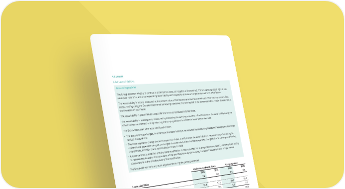 4.6 Leases 4.6a) Lease liabilities Accounting policies The Group assesses whether a contract is or contains a lease, at inception of the contract. The Group recognises a right-of-use asset (see note 3.1a) and a corresponding lease liability with respect to all lease arrangements in which it is the lessee. The lease liability is initially measured at the present value of the lease payments that are not paid at the commencement date, discounted by using the Group’s incremental borrowing rate (since the rate implicit in the leases cannot be readily determined) at the inception of each lease. The lease liability is presented as a separate line in the consolidated balance sheet. The lease liability is subsequently measured by increasing the carrying amount to reflect interest on the lease liability (using the effective interest method) and by reducing the carrying amount to reflect the lease payments made. The Group remeasures the lease liability whenever: • The lease term has changed, in which case the lease liability is remeasured by discounting the revised lease payments using a revised discount rate • The lease payments change due to changes in an index, in which cases the lease liability is remeasured by discounting the revised lease payments using an unchanged discount rate (unless the lease payments change is due to a change in a floating interest rate, in which case a revised discount rate is used) • A lease contract is modified and the lease modification is not accounted for as a separate lease, in which case the lease liability is remeasured based on the lease term of the modified lease by discounting the revised lease payments using a revised discount rate at the effective date of the modification. The Group did not make any such adjustments during the period presented. Undiscounted cash flows Carrying value 2025 2024 2025 2024 Lease Liabilities £m £m £m £m Analysed as: Non-current 93.6 68.5 Current 11.6 5.8 Total lease liability 105.2 74.3 Lease liability maturity analysis Year 1 11.5 5.7 Year 2 12.4 6.9 Year 3 13.3 8.5 Year 4 13.1 9.0 Year 5 13.0 9.5 Onwards 41.9 34.8 Total 105.2 74.4 The Group does not face a significant liquidity risk with regard to its lease liabilities. Lease liabilities are monitored within the Group’s treasury function. THE UNITE GROUP PLC Annual Report and Accounts 2025 187 97.3 11.8 109.1 11.8 12.2 12.0 12.2 12.1 48.8 109.1 66.8 6.0 72.8 6.0 6.6 6.9 7.7 8.1 37.5 72.8