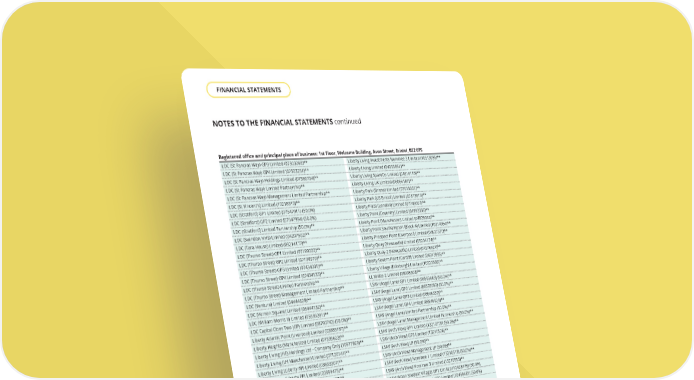 NOTES TO THE FINANCIAL STATEMENTS continued Registered office and principal place of business: 1st Floor, Welcome Building, Avon Street, Bristol, BS2 0PS LDC (St Pancras Way) GP3 Limited (07503268)** Liberty Living Investments Nominee 3 Limited (10519085)** LDC (St Pancras Way) GP4 Limited (07503251)** Liberty Living Limited (04055891)** LDC (St Pancras Way) Holdings Limited (07360734)** Liberty Living SpareCo Limited (04616115)** LDC (St Pancras Way) Limited Partnership** Liberty Living UK Limited (06064187)** LDC (St Pancras Way) Management Limited Partnership** Liberty Park (Bristol) Limited (07615601)** LDC (St Vincent's) Limited (10218310)** Liberty Park (US Bristol) Limited (07615619)** LDC (Stratford) GP1 Limited (07547911) (50.0%) Liberty Plaza (London) Limited (07745097)** LDC (Stratford) GP2 Limited (07547994) (50.0%) Liberty Point (Coventry) Limited (04992358)** LDC (Stratford) Limited Partnership (50.0%)** Liberty Point (Manchester) Limited (04828083)** LDC (Swindon NHS) Limited (04207502)** Liberty Point Southampton (Block A) Limited (10314954)** LDC (Tara House) Limited (09214177)** Liberty Prospect Point (Liverpool) Limited (04637570)** LDC (Thurso Street) GP1 Limited (07199022)** Liberty Quay (Newcastle) Limited (05234174)** LDC (Thurso Street) GP2 Limited (07198979)** Liberty Quay 2 (Newcastle) Limited (07376627)** LDC (Thurso Street) GP3 Limited (07434001)** Liberty Severn Point (Cardiff) Limited (04313995)** LDC (Thurso Street) GP4 Limited (07434133)** Liberty Village (Edinburgh) Limited (10323566)** LDC (Thurso Street) Limited Partnership** LL Midco 2 Limited (08998308)** LDC (Thurso Street) Management Limited Partnership** LSAV (Angel Lane) GP1 Limited (08593689) (50.0%)** LDC (Ventura) Limited (04444628)** LSAV (Angel Lane) GP2 Limited (08593692) (50.0%)** LDC (Vernon Square) Limited (06444132)** LSAV (Angel Lane) GP3 Limited (08646359)** LDC (William Morris II) Limited (05999281)** LSAV (Angel Lane) GP4 Limited (08646929)** LDC Capital Cities Two (GP) Limited (08790742) (50.0%)** LSAV (Angel Lane) Limited Partnership (50.0%)** Liberty Atlantic Point (Liverpool) Limited (03885187)** LSAV (Angel Lane) Management Limited Partnership (50.0%)** Liberty Heights (Manchester) Limited (07399622)** LSAV (Arch View) GP1 Limited (13210709) (50.0%)** Liberty Living (HE) Holdings Ltd - Company Only (10977869)** LSAV (Arch View) GP3 Limited (13210526)** Liberty Living (LH Manchester) Limited (07120141)** LSAV (Arch View) LP (50.0%)** Liberty Living (Liberty AP) Limited (03633307)** LSAV (Arch View) Management LP (50.0%)** Liberty Living (Liberty PP) Limited (03991475)** LSAV (Arch View) Nominee 1 Limited (13210518) (50.0%)** Liberty Living (LP Bristol) Limited (07242607)** LSAV (Arch View) Nominee 3 Limited (13210553)** Liberty Living (LP Coventry) Limited (04330729)** LSAV (Aston Student Village) GP1 Limited (10498478) (50.0%) Liberty Living (LP Manchester) Limited (04314013)** LSAV (Aston Student Village) GP2 Limited (10498481) (50.0%) Liberty Living (LQ Newcastle) Limited (04302869)** LSAV (Aston Student Village) GP3 Limited (10498217) Liberty Living (LQ2 Newcastle) Limited (07298853)** LSAV (Aston Student Village) GP4 Limited (10498484) Liberty Living Finance PLC (10979349)** LSAV (Aston Student Village) Limited Partnership (50.0%) Liberty Living Group Limited (BR020813)*/** LSAV (Aston Student Village) Management Limited Partnership (50.0%) Liberty Living Investments 1 Limited Partnership** LSAV (Drapery Plaza) GP1 Limited (13209904) (50.0%)** Liberty Living Investments 2 Limited Partnership** LSAV (Drapery Plaza) GP3 Limited (13210206)** Liberty Living Investments 3 Limited Partnership** LSAV (Drapery Plaza) LP (50.0%)** Liberty Living Investments GP1 Limited (09375866)** LSAV (Drapery Plaza) Management LP (50.0%)** Liberty Living Investments GP2 Limited (09375868)** LSAV (Drapery Plaza) Nominee 1 Limited (13209909) (50.0%)** Liberty Living Investments GP3 Limited (10518849)** LSAV (Drapery Plaza) Nominee 3 Limited (13209979)** Liberty Living Investments II Holdco 2 Limited (09574059)** LSAV (No.1) GP1 Limited (13184531) (50.0%)** Liberty Living Investments II Holdco Limited (08929431)** LSAV (No.1) GP3 Limited (13184662)** Liberty Living Investments II Limited (09680931)** LSAV (No.1) LP (50.0%)** Liberty Living Investments Limited (09375870)** LSAV (No.1) Management LP (50.0%)** Liberty Living Investments Nominee 1 Limited (09375846)** LSAV (No.1) Nominee 1 Limited (13184589) (50.0%)** Liberty Living Investments Nominee 2 Limited (09375849)** LSAV (No.1) Nominee 3 Limited (13184656)** * Held directly by the Company. ** Company is exempt from the requirements of the Companies Act relating to the audit of individual financial statements by virtue of s477 or s479A for the financial year ended 31 December 2025. THE UNITE GROUP PLC Annual Report and Accounts 2025 198 FINANCIAL STATEMENTS