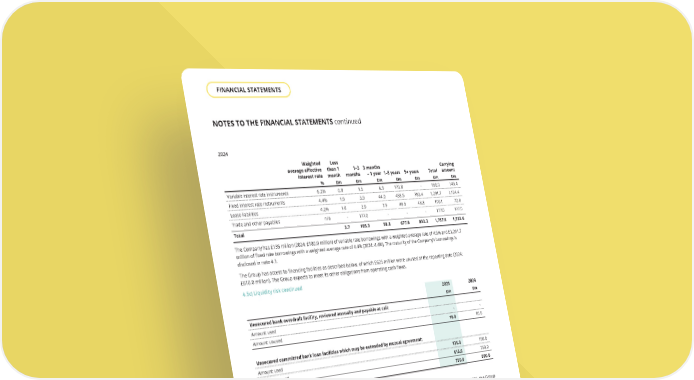 2024 The Company has £135 million (2024: £180.0 million) of variable rate borrowings with a weighted average rate of 4.9% and £1,291.7 million of fixed rate borrowings with a weighted average rate of 4.4% (2024: 4.4%). The maturity of the Company’s borrowings is disclosed in note 4.1. The Group has access to financing facilities as described below, of which £625 million were unused at the reporting date (2024: £610.0 million). The Group expects to meet its other obligations from operating cash flows. 4.5c) Liquidity risk continued 2025 £m Unsecured bank overdraft facility, reviewed annually and payable at call: Amount used - Amount unused 10.0 Unsecured committed bank loan facilities which may be extended by mutual agreement: Amount used 135.0 Amount unused 615.0 750.0 4.5d) Covenant compliance The Group monitors its covenant position and the forecast headroom available on a monthly basis. At 31 December 2025, the Group was in full compliance with all of its borrowing covenants. The Group’s unsecured borrowings carry several covenants. The covenant regime is IFRS-based and gives the Group substantial operational flexibility, allowing property acquisitions, disposals and developments to occur with relative freedom. 2025 Covenant Actual LTV < 60% 26% Gearing <1.50 0.26 Unencumbered assets ratio >1.70 3.84 Secured gearing <0.25 - Development assets ratio <30% 7% Joint venture ratio <55% 22% Interest cover >2.00 32.80 NOTES TO THE FINANCIAL STATEMENTS continued 2024 Covenant Actual - - <1.50 0.21 >1.70 4.48 <0.25 - <30% 8% <55% 22% >2.00 81.56 THE UNITE GROUP PLC Annual Report and Accounts 2025 186 2024 £m - 10.0 150.0 750.0 900.0 FINANCIAL STATEMENTS Weighted average effective interest rate Less than 1 month 1–3 months 3 months – 1 year 1–5 years 5+ years Total Carrying amount % £m £m £m £m £m £m £m Variable interest rate instruments 6.2% 0.8 1.5 6.9 170.8 - 180.0 149.4 Fixed interest rate instruments 4.4% 1.9 3.9 44.0 458.5 783.4 1,291.7 1,124.4 Lease liabilities 4.2% 1.0 2.9 7.9 48.5 48.8 109.1 72.8 Trade and other payables n/a - 177.0 - - - 177.0 177.0 Total 3.7 185.3 58.8 677.8 832.2 1,757.8 1,523.6