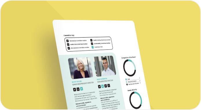 Nicky joined the Board on 1 September 2022 and was appointed Senior Independent Director and Chair of the Remuneration Committee in March 2023. Relevant skills, experience and contribution A chartered accountant and a proven business leader with an established plc track record and extensive experience in consumer facing markets, including as CEO of Hobbs between 2008 and 2014. Also, the Finance Director of Marks & Spencer’s Food Division in a career at the retailer spanning 1982–2005. Non-Executive Director experience includes chairing Remuneration and Audit Committees and as a Senior Independent Director. In this role, she supports the Chair in the effective running of the Board. External appointments • Barratt Redrow Plc (Senior Independent Non-Executive Director) NICKY DULIEU SENIOR INDEPENDENT DIRECTOR N A R ROSS PATERSON NON-EXECUTIVE DIRECTOR Ross joined the Board in September 2017 and became the Audit Committee Chair in January 2018. Relevant skills, experience and contribution A former Chief Financial Officer of Stagecoach Group and Non-Executive Director of Virgin Rail Group Holdings Limited. Ross has experience in finance, business development and legal, gained from his finance role at Stagecoach Group. Contributes many years’ experience of managing finance in a complex operational business and valued insights to innovation, as we continue to enhance our service offer for customers. His financial and broader business experience is particularly valuable as Chair of the Audit & Risk Committee, where he helps oversee the Group’s financial rigour and delivery. External appointments • Bytes Technology Group plc (Non-Executive Director) • Tracsis plc (Non-Executive Director) • Institute of Chartered Accountants of Scotland (Business Policy Panel member) Composition of the Board Chair 1 Executive Directors 2 Non-Executive Directors 7 Gender diversity Female 4 Male 6 Non-Executive Director Independence Non-independent 1 Independent Non-Executive Director 6 Committee key Nomination Committee member Audit & Risk Committee member Remuneration Committee member N A R H Health & Safety Committee member Sustainability Committee member Committee chair S N A R S THE UNITE GROUP PLC Annual Report and Accounts 2025 77