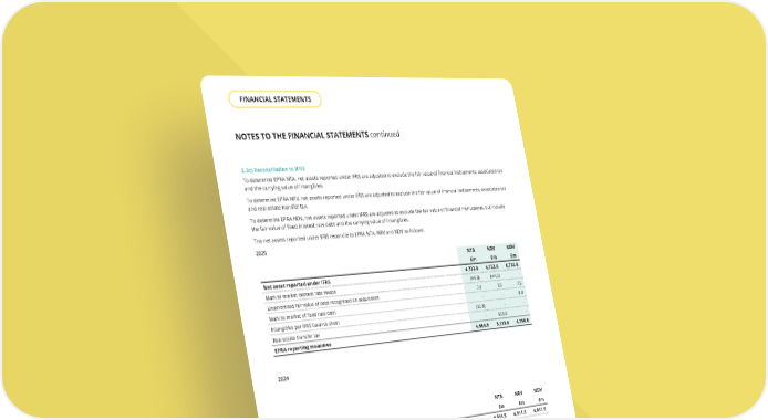 2.3c) Reconciliation to IFRS To determine EPRA NTA, net assets reported under IFRS are adjusted to exclude the fair value of financial instruments, associated tax and the carrying value of intangibles. To determine EPRA NRV, net assets reported under IFRS are adjusted to exclude the fair value of financial instruments, associated tax and real estate transfer tax. To determine EPRA NDV, net assets reported under IFRS are adjusted to exclude the fair value of financial instruments, but include the fair value of fixed interest rate debt and the carrying value of intangibles. The net assets reported under IFRS reconcile to EPRA NTA, NRV and NDV as follows: 2025 NTA NRV NDV £m £m £m Net asset reported under IFRS 4,733.8 4,733.8 4,733.8 Mark to market interest rate swaps (44.0) (44.0) - Unamortised fair value of debt recognised on acquisition 7.9 7.9 7.9 Mark to market of fixed rate debt - - 8.9 Intangibles per IFRS balance sheet (12.8) - - Real estate transfer tax - 435.9 - EPRA reporting measures 4,684.9 5,133.6 4,750.6 2024 NOTES TO THE FINANCIAL STATEMENTS continued NTA NRV NDV £m £m £m Net asset reported under IFRS 4,811.5 4,811.5 4,811.5 Mark to market interest rate swaps (53.6) (53.6) - Unamortised swap gain (1.0) (1.0) (1.0) Mark to market of fixed rate debt - - 31.7 Unamortised fair value of debt recognised on acquisition 11.1 11.1 11.1 Current tax 0.8 0.8 - Deferred tax - - - Intangibles per IFRS balance sheet (10.4) - - Real estate transfer tax - 467.4 - EPRA reporting measures 4,758.4 5,236.2 4,853.3 THE UNITE GROUP PLC Annual Report and Accounts 2025 160 FINANCIAL STATEMENTS