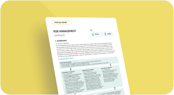 RISK MANAGEMENT continued CHIEF EXECUTIVE AND EXECUTIVE COMMITTEE Meet at least quarterly, typically weekly. The Chief Executive is ultimately responsible for managing climate risk, realising climate opportunities and implementing the sustainability framework with support from the Executive Committee. The Executive Committee reviews the annual business plan and long-term Strategic Plan for Unite Group, which covers all aspects of performance including climate risks and opportunities, ahead of recommending it to the Board. On a monthly basis, the Executive Committee reviews actual and forecast performance, including climate-related performance, as appropriate, taking action to improve wherever necessary and reports this progress to the Board. UNITE GROUP PLC BOARD • Ultimate responsibility for setting Unite Group strategy, prioritisation of activities and capital allocation. • Provides challenge to management on target setting and performance. • Ensures Unite Group maintains an effective risk management framework, including climate-related risks and opportunities . PORTFOLIO PERFORMANCE TEAM INVESTMENT PERFORMANCE TEAM OPERATIONS PERFORMANCE TEAM • Chaired by the Chief Operating Officer (on an interim basis). • Manages climate risk and opportunities in investment decisions, such as improving EPC ratings and energy performance of existing properties. • Manages sustainability investment performance against budgets for the Unite Group, including consideration of climate-related risks and issues in investment opportunities. • Chaired by the Group Development Director, responsible for new property-related investment. • Manages climate risk and opportunities with regards to potential development sites. • Tasked with reducing embodied carbon and improving operational energy performance of developments, in line with our 2030 net zero carbon target. • Chaired by the Group Operations Director, responsible for operating the investment property portfolio. • Address climate risks and opportunities through improved operational management of buildings and education of student customers. • Ensures plant is properly maintained to operate at designed energy efficiency. • Identifies opportunities to secure low-carbon energy through Power Purchase Agreements. • Reviews, monthly, detailed financial performance relating to energy use, taking actions to mitigate variance from approved budget. SUSTAINABILITY COMMITTEE REMUNERATION COMMITTEE AUDIT AND RISK COMMITTEE • Four meetings in 2025. • Oversees development and implementation of our sustainability framework and recommends any changes to the Board. • Reports progress to the Board quarterly with input from across the Group. • Receives updates on best practice, market expectations and climate-related developments from internal and external experts, including advisers, investors and supply chain partners. • Chaired by Dame Shirley Pearce with two Non-Executive Director members. • Attended by Group Chair, CEO, CFO, Head of Sustainability and Group People Director. • Three meetings in 2025. • Chaired by Nicky Dulieu with three Non-Executive Director members. • Engages with shareholders to inform target setting, including climate-related objectives. • Supports the sustainability framework by aligning remuneration and incentive targets to the strategy. These form part of the employee-wide bonus scheme, the Executive Director’s bonus scheme and Senior Managers’ long-term incentive plan (LTIP). as detailed in the Remuneration Committee Report on page 113, which covers performance against 2025 bonus targets. • Four meetings in 2025. • Chaired by Ross Paterson with three other Non-Executive Director members. • Ensures climate-related risks and opportunities are identified, assessed, then effectively mitigated and managed as part of overall risk management framework. • Oversees preparation of Unite Group’s financial disclosures, including TCFD and the Annual Report. SUSTAINABILITY TEAM • Led by the Head of Sustainability, a dedicated team with operational responsibility for coordinating the implementation of the sustainability framework. • Head of Sustainability regularly reports progress to the Portfolio and Operations Performance teams, Executive Committee and attends Sustainability Committee meetings. • Responsible for developing asset transition plans, implementing energy and carbon reduction capital projects, ensuring EPC and wider energy and climate-related compliance. • Produces reporting on climate- and sustainability-related performance. I R R R R I I I 1. GOVERNANCE 1A. BOARD OVERSIGHT Our Chief Executive has overall responsibility for climate-related risks and opportunities, with the Sustainability Committee, a sub-committee of the Board, overseeing climate-related issues. The Committee meets quarterly, reviewing progress towards our 2030 net zero carbon target, climate risk and operational performance (see the Sustainability Committee Report on page 108.) The Board conducts a formal risk review twice a year (see page 53), which includes climate-related risks. These risks and opportunities are integrated into business planning and investment cases brought to the Investment Committee, Executive Committee, and Sustainability Committee. This ensures management and the Board are aware of risks and can incorporate them into their planning, budgeting and decision making. Full responsibilities for managing climate-related risks are outlined below. 1B. MANAGEMENT’S ROLE Informing Key Reporting I R THE UNITE GROUP PLC Annual Report and Accounts 2025 64 STRATEGIC REPORT