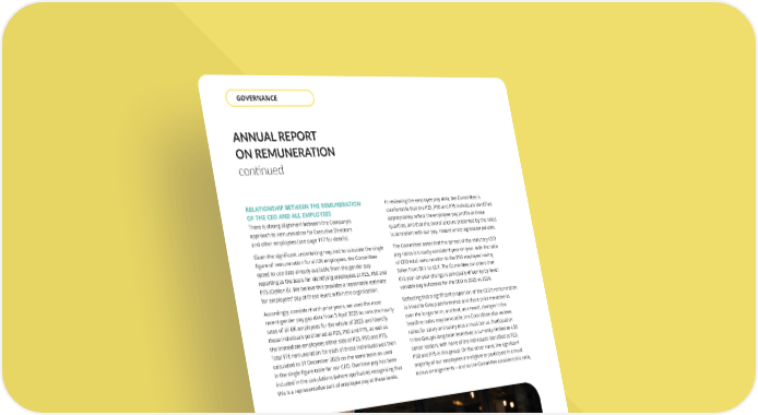 RELATIONSHIP BETWEEN THE REMUNERATION OF THE CEO AND ALL EMPLOYEES There is strong alignment between the Company’s approach to remuneration for Executive Directors and other employees (see page 117 for details). Given the significant undertaking required to calculate the single figure of remuneration for all UK employees, the Committee opted to use data already available from the gender pay reporting as the basis for identifying employees at P25, P50 and P75 (Option B). We believe this provides a reasonable estimate for employees’ pay at these levels within the organisation. Accordingly, consistent with prior years, we used the most recent gender pay gap data from 5 April 2025 to rank the hourly rates of all UK employees for the whole of 2025 and identify those individuals positioned at P25, P50 and P75, as well as the immediate employees either side of P25, P50 and P75. Total FTE remuneration for each of these individuals was then calculated to 31 December 2025 on the same basis as used in the single figure table for our CEO. Overtime pay has been included in the calculations (where applicable) recognising that this is a representative part of employee pay at these levels. In reviewing the employee pay data, the Committee is comfortable that the P25, P50 and P75 individuals identified appropriately reflect the employee pay profile at those quartiles, and that the overall picture presented by the ratios is consistent with our pay, reward and progression policies. The Committee notes that the spread of the statutory CEO pay ratios is broadly consistent year-on-year, with the ratio of CEO total remuneration to the P50 employee having fallen from 56:1 to 42:1. The Committee considers that this year-on-year change is principally driven by by lower variable pay outcomes for the CEO in 2025 vs 2024. Reflecting that a significant proportion of the CEO’s remuneration is linked to Group performance and share price movements over the longer term, and that, as a result, changes in the headline ratios may be volatile, the Committee also reviews ratios for salary and salary plus annual bonus. Participation in the Group’s long-term incentives is currently limited to c.50 senior leaders, with none of the individuals identified as P25, P50 and P75 in this group. On the other hand, the significant majority of our employees are eligible to participate in annual bonus arrangements – and so the Committee considers this ratio, ANNUAL REPORT ON REMUNERATION continued THE UNITE GROUP PLC Annual Report and Accounts 2025 126 GOVERNANCE