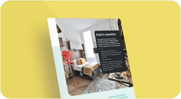 Q: TO WHAT EXTENT, WILL THE ACQUISITION BENEFIT OUR UNIVERSITY PARTNERS? A: We have predominantly supported university partners to meet their accommodation guarantee to first-year students, via our nominations agreements, further freeing up homes in local communities for families to use. The benefit of the Empiric acquisition is that we’re now able to provide their students with a home that is tailored to their needs while studying in their second or third year. The pressure on the HMO market means there is also greater uncertainty surrounding the supply and availability of privately rented homes for students, so knowing there are viable alternatives is important for universities. Our proven track record in providing high-quality student housing and delivering expert welfare support, will give universities confidence that we support students throughout their academic journey. Q: WHAT IS THE STRATEGIC PRIORITY FOR THE BUSINESS OVER THE NEXT 12 MONTHS? A: We will continue to invest in new and existing student homes. Our focus next year is on delivering another university partnership to follow the joint ventures we have finalised with Newcastle University and Manchester Metropolitan University. We’ll also continue to align our portfolio with the strongest universities and the cities showing the greatest demand for student accommodation. Finally, through the acquisition of Empiric, we’ll be able to provide the dedicated offer for returning students, another fundamental part of our long-term growth strategy. The purchase of Empiric Student Property plc strengthens our presence in leading UK university cities, complementing our existing portfolio with high-spec properties aimed at returning (second- and third-year), postgraduate and international students. Key facts: • Geographical footprint: Properties are located across 22 UK university cities, including Edinburgh, Cardiff, Birmingham, Manchester and Bristol. • Bed numbers: 7,700. The acquisition strategic rationale was driven by quality and central locations, which complements our existing offer to first-year students. We anticipate it delivering c.£17 million in synergy savings post integration. Empiric acquisition THE UNITE GROUP PLC Annual Report and Accounts 2025 21