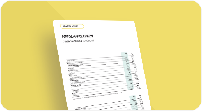 PERFORMANCE REVIEW Financial review continued 2025 £m 2024 £m Adjusted earnings 232.3 213.8 SaaS implementation costs (14.6) (11.9) EPRA earnings 217.7 201.9 Valuation gains/(losses) and profit/(loss) on disposal¹ (73.7) 239.6 Changes in valuation of interest rate swaps and debt break costs (22.5) (3.5) Non-recurring costs² (9.7) - Non-controlling interest and other items 14.2 6.0 IFRS profit before tax 97.6 444.0 Adjusted earnings per share 47.5p 46.6p IFRS diluted earnings per share 19.9p 96.1p 1. Includes TP Paddington abortive costs 2. Includes restructuring costs and Empiric acquisition costs to date A reconciliation of profit before tax to adjusted earnings and EPRA earnings is expanded in section 7 of the financial statements. 2025 £m 2024 £m Rental income 428.2 398.0 Property operating expenses (134.2) (121.9) Net operating income (NOI) 294.0 276.1 NOI margin 68.7% 69.4% Management fees 17.4 17.3 Overheads (48.4) (38.4) Finance costs (46.7) (44.0) Development costs and other items 1.6 (9.1) EPRA earnings 217.7 201.9 SaaS implementation costs 14.6 11.9 Adjusted earnings 232.3 213.8 Adjusted EPS 47.5p 46.6p EPRA EPS 44.5p 44.0p EBIT margin 65.9% 68.1% A reconciliation of profit after tax to EPRA earnings and adjusted earnings is set out in note 2.2b to the financial statements. RENTAL GROWTH AND PROFITABILITY Rental income increased by £30.2 million to £428.2 million, up 8% compared to 2024. Like-for-like rental income, excluding the impact of major refurbishments, acquisitions, disposals and development completions, increased by 5% during the year, reflecting strong rental growth but modestly lower occupancy for the year. Non-like-for-like income grew by £15.3 million with additional rental income from development completions and asset management schemes exceeding the impact of income forgone through disposals. Property operating expenses increased by 9% for like-for-like properties, primarily driven by higher staff costs due to the 5% increase in the Real Living Wage and higher Employer’s National Insurance contributions. Marketing costs increased due to higher costs of acquisition in a more competitive sales environment. Other cost increases included higher council tax as a result of lower occupancy in certain cities, and increased building insurance premiums. THE UNITE GROUP PLC Annual Report and Accounts 2025 36 STRATEGIC REPORT