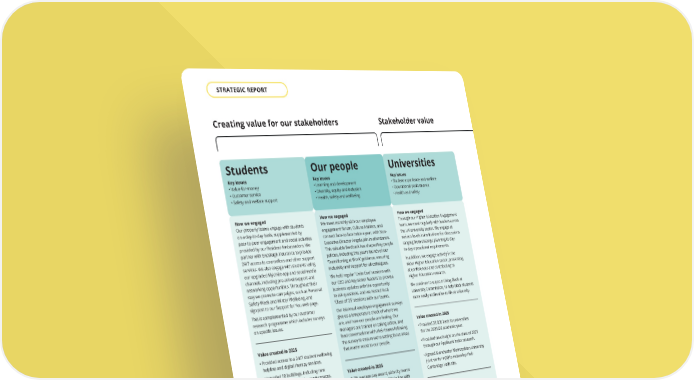 Stakeholder value How we engaged Our property teams engage with students on a day-to-day basis, supplemented by peer-to-peer engagement and social activities provided by our Resident Ambassadors. We partner with Endsleigh Insurance to provide 24/7 access to counsellors and other support services. We also engage with students using our upgraded MyUnite app and social media channels, including pre-arrival support and networking opportunities. Throughout their stay we promote campaigns, such as Personal Safety Week and Winter Wellbeing, and signpost to our Support for You web page. This is complemented by our customer research programme which includes surveys on specific issues. Value created in 2025 • Provided access to a 24/7 student wellbeing helpline and digital therapy services. • Upgraded 10 buildings, including new bedrooms, kitchens and amenity spaces. • Supported the award of accommodation scholarships to 70 students through the Unite Foundation and an additional 60 free one-year tenancies. • Launched our new resident experience app to further enhance customer service. • Signed the Care Leaver Covenant. Priorities for 2026 We will upgrade bedrooms, kitchens and amenity spaces in our refurbishment projects. We will further enhance the experience of our students by improved capture of additional needs prior to arrival and continue to be responsive to the differing needs of under-represented students, and those with additional challenges relating to the transition into student accommodation. We are also investing to upgrade our technology platform to deliver an improved end-to-end experience for students from the point of booking, through their time with us and ultimately when they leave. Students Key issues • Value-for-money • Customer service • Safety and welfare support Our people Key issues • Learning and development • Diversity, equity and inclusion • Health, safety and wellbeing Universities Key issues • Student experience and welfare • Operational performance • Health and safety How we engaged We meet monthly with our employee engagement forum, Culture Matters, and connect face-to-face twice a year, with Non- Executive Director Angela Jain in attendance. This valuable feedback has shaped key people policies, including this year’s launch of our ‘Transitioning at Work’ guidance, ensuring inclusivity and support for all colleagues. We hold regular ‘Unite Live’ sessions with our CEO and key senior leaders to provide business updates with the opportunity to ask questions, and we hosted local ‘Class of ‘25’ sessions with our teams. Our biannual employee engagement surveys give us a temperature check of where we are, and how our people are feeling. Our managers are trained on taking action, and lead conversations with their teams following the survey to ensure we’re setting focus areas that matter most to our people. Value created in 2025 • 3.2% average pay award, with city teams receiving the greatest uplifts in line with our commitment to the Real Living Wage. • Enhanced our performance enablement framework helping our teams to have more meaningful development conversations. • Brought our senior leaders together to connect and share our vision for the new strategy. • Our Academy platform was upgraded to a new system enabling our colleagues to more easily access learning and development opportunities. Priorities for 2026 Our focus is to create a Great Place to Work. We will focus on welcoming new colleagues following the acquisition of Empiric, embedding our new Academy platform, making it easier to access what’s needed to succeed in a role and clear on how to grow. We will also move to a new head office in Bristol, giving our teams a high-quality workplace to come together and collaborate. How we engaged Through our Higher Education Engagement team, we meet regularly with leaders across the UK university sector. We engage at various levels in institutions for discussions ranging from strategic planning to day- to-day operational requirements. In addition, we engage actively in the wider Higher Education sector, presenting at conferences and contributing to Higher Education research. We continue to support Living Black at University Commission, to help black students more easily acclimatise to life at university. Value created in 2025 • Provided 37,000 beds to universities for the 2025/26 academic year. • Provided new insight on the class of 2025 through our Applicant Index research. • Agreed Manchester Metropolitan University joint venture (JV) to redevelop their Cambridge Halls site. Priorities for 2026 We will continue to support the growth ambitions of our university partners through nomination agreements and opportunities to deepen strategic partnerships. Continuing our research programme in partnership with universities to better understand each cohort of students. Creating value for our stakeholders THE UNITE GROUP PLC Annual Report and Accounts 2025 10 STRATEGIC REPORT