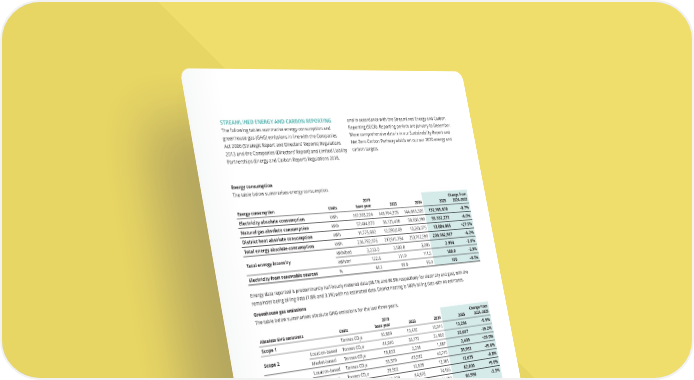 STREAMLINED ENERGY AND CARBON REPORTING The following tables summarise energy consumption and greenhouse gas (GHG) emissions in line with the Companies Act 2006 (Strategic Report and Directors’ Reports) Regulations 2013 and the Companies (Directors’ Report) and Limited Liability Partnerships (Energy and Carbon Report) Regulations 2018, Energy consumption The table below summarises energy consumption. Energy consumption Units 2019 base year 2023 2024 2025 Change from 2024–2025 Electricity absolute consumption kWh 167,593,224 149,704,305 144,685,326 132,165,870 -8.7% Natural gas absolute consumption kWh 57,414,070 56,121,430 58,836,198 55,332,232 -6.0% District heat absolute consumption kWh 11,775,682 12,090,049 10,261,075 13,084,885 +27.5% Total energy absolute consumption kWh 236,782,976 217,915,784 213,782,599 200,582,987 -6.2% Total energy intensity kWh/bed 3,233.0 3,100.8 3,085 2,994 -2.9% kWh/m 2 122.6 111.9 111.5 108.0 -3.1% Electricity from renewable sources % 61.1 99.9 99.9 100 +0.1% Energy data reported is predominantly half-hourly metered data (98.1% and 96.9% respectively for electricity and gas), with the remainder being billing data (1.8% and 3.1%) with no estimated data. District heating is 100% billing data with no estimates. Greenhouse gas emissions The table below summarises absolute GHG emissions for the last three years. Absolute GHG emissions Units 2019 base year 2023 2024 2025 Change from 2024–2025 Scope 1 Tonnes CO 2 e 10,669 10,410 10,914 10,266 -5.9% Scope 2 Location-based Tonnes CO 2 e 44,910 33,172 31,800 25,687 -19.2% Market-based Tonnes CO 2 e 18,833 2,218 1,867 2,409 +29.0% Scope 1 & 2 Location-based Tonnes CO 2 e 55,579 43,582 42,715 35,953 -15.8% Market-based Tonnes CO 2 e 29,502 12,628 12,781 12,675 -0.8% Scope 3 Tonnes CO 2 e 148,279 84,876 74,166 82,000 +8.0% Bed numbers (pro rata for sites only open part of year) 73,240 70,277 69,292 66,986 -3.3% Floor area (pro rata for sites only open part of year) m 2 1,931,148 1,947,292 1,918,164 1,857,883 -3.1% The table below summarises building-related GHG emissions intensity per m 2 (gross internal floor area) and per lettable-bed regardless of occupancy. GHG emissions intensity Units 2019 base year 2023 2024 2025 Change from 2024–2025 Scope 1 & 2 by floor area Location-based kgCO 2 e/m² 28.8 22.4 22.3 19.4 -13.1% Market-based kgCO 2 e/m² 15.3 6.5 6.7 6.8 +2.4% Scope 1 & 2 by bed numbers Location-based kgCO 2 e/bed 758.9 620.1 616.4 536.7 -12.9% Market-based kgCO 2 e/bed 402.8 179.7 184.4 189.2 +2.6% and in accordance with the Streamlined Energy and Carbon Reporting (SECR). Reporting periods are January to December. More comprehensive data is in our Sustainability Report and Net Zero Carbon Pathway which set out our 2030 energy and carbon targets. Total energy consumption fell by 6.2% driven by reductions in electricity and gas consumption despite increased district heat consumption. When disposals and new openigns are removed, like-for-like consumption fell by 3%. Reductions in electrictiy and gas follow the investment of £10 million in 2024 and £6.9 million during 2025 into energy efficiency measures, including the latest THE UNITE GROUP PLC Annual Report and Accounts 2025 49