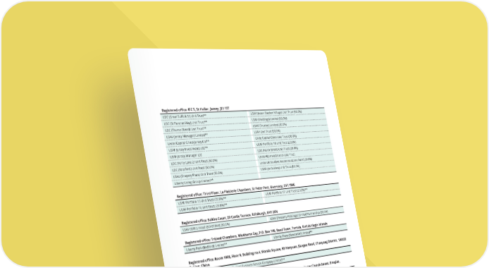 Registered office: IFC 5, St Helier, Jersey, JE1 1ST LDC (Great Suffolk St) Unit Trust** LSAV (Aston Student Village) Unit Trust (50.0%) LDC (St Pancras Way) Unit Trust** LSAV (Holdings) Limited (50.0%) LDC (Thurso Street) Unit Trust** LSAV (Trustee) Limited (50.0%) LSAV (Jersey Manager) Limited** LSAV Unit Trust (50.0%) Unite (Capital Cities) Jersey Ltd** Unite Capital Cities Unit Trust (50.0%) USAF Jersey Investments Ltd** USAF Portfolio 18 Unit Trust (29.8%) USAF Jersey Manager Ltd LDC (Nairn Street) Unit Trust (29.8%) LDC (Ferry Lane 2) Unit Trust (50.0%) Unite HEI Investments Unit Trust LDC (Stratford) Unit Trust (50.0%) Unite UK Student Accommodation Fund (29.8%) LSAV (Drapery Plaza) Unit Trust (50.0%) LSAV (Arch View) Unit Trust (50.0%) Liberty Living Group Limited** Registered office: Third Floor, La Plaiderie Chambers, St Peter Port, Guernsey, GY1 1WG USAF Portfolio 15 Unit Trust (29.8%)** USAF Portfolio 17 Unit Trust (29.8%)** USAF Portfolio 16 Unit Trust (29.8%)** Registered office: Saltire Court, 20 Castle Terrace, Edinburgh, EH1 2EN LSAV (GP) Limited (SC431844) (50.0%) LSAV (Property Holdings) Limited Partnership (50.0%) Registered office: Trident Chambers, Wickhams Cay, P.O. Box 146, Road Town, Tortola, British Virgin Islands Liberty Park (Bedford) Limited** Liberty Plaza (Newcastle) Limited** Registered office: Room 1008, Floor 9, Building no.4, Wanda Square, 93 Haoyuan, Jianguo Road, Chaoyang District, 100022 Beijing, China Unite Students Accommodation (Beijing) Business Service Company Limited** Registered office and principal place of business: Second Floor, St George’s Court, Upper Church Street, Douglas, Isle of Man, IM1 1EE Filbert Street Student Accommodation Unit Trust (29.8%)**, terminated in 2025 THE UNITE GROUP PLC Annual Report and Accounts 2025 201