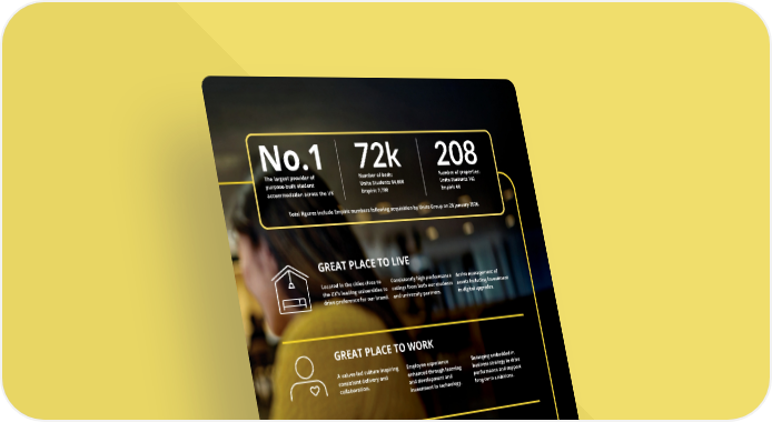 208 Number of properties: Unite Students 142 Empiric 66 72k Number of beds: Unite Students 64,000 Empiric 7,700 No.1 The largest provider of purpose-built student accommodation across the UK Unite as One Challenge the Ordinary Lead with Heart Stay on Point Guided by our values GREAT PLACE TO WORK A values-led culture inspiring consistent delivery and collaboration. Employee experience enhanced through learning and development and investment in technology. Belonging embedded in business strategy to drive performance and support long-term ambitions. A disciplined approach to financial management to ensure sustainable growth and resilience through a tougher market cycle. Predictable recurring income model continues to deliver solid returns, supported by a clear focus on capital allocations and maintaining portfolio quality. Commitment to long- term sustainable growth, underpinned by key strategic opportunities including the acquisition of Empiric. GREAT PLACE TO INVEST Located in the cities close to the UK’s leading universities to drive preference for our brand. Consistently high performance ratings from both our students and university partners. Active management of assets including investment in digital upgrades. GREAT PLACE TO LIVE Total figures include Empiric numbers following acquisition by Unite Group on 28 January 2026. THE UNITE GROUP PLC Annual Report and Accounts 2025 03