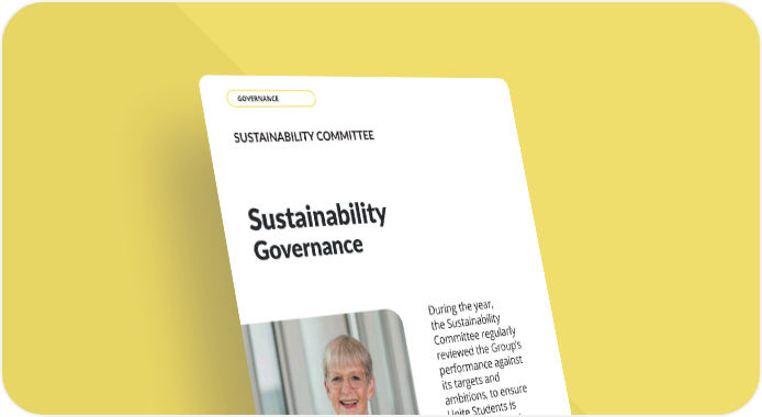 SUSTAINABILITY COMMITTEE Our sustainability framework was updated during the year with refreshed targets to support our key objectives of creating a positive impact across four key areas: young people, communities, the environment and our colleagues. SUSTAINABILITY COMMITTEE ACTIVITIES DURING THE YEAR YOUNG PEOPLE With encouragement from the Committee, Unite Students provided funding to the Unite Foundation for the 2025/26 academic year, providing estranged and care-experienced students with a safe and Sustainability Governance During the year, the Sustainability Committee regularly reviewed the Group’s performance against its targets and ambitions, to ensure Unite Students is a responsible and resilient business. DAME SHIRLEY PEARCE CHAIR OF THE SUSTAINABILITY COMMITTEE THE UNITE GROUP PLC Annual Report and Accounts 2025 108 GOVERNANCE