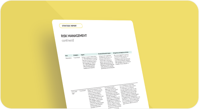 RISK MANAGEMENT continued Risk Category Impact Potential financial impact Mitigation and adaption activities Reputation Transitional Failing to support stakeholders or meet expectations during the low carbon transition could see adverse reputational impacts and challenge our ability to form lasting partnerships with university partners, students and investors. Failing to meet stakeholder expectations could harm our business performance in various ways, including our ability to secure nomination agreements with universities and facing increased financing costs, but this isn’t currently quantifiable with existing data. We actively engage with customers, university partners, suppliers, and investors to communicate our sustainability performance and goals, while seeking feedback to align with their expectations and ensure they’re brought on the journey with us. Policy and legal Transitional Regulations and government policies will continue to evolve, raising minimum standards for building performance and other requirements to accelerate the transition to net zero carbon. There is a risk that changes in government policy reduce financial support for key technologies, driving a requirement for increased investment. The UK Government’s legally binding 2050 net zero target currently doesn’t include industry-specific decarbonisation pathways and investment requirements. However, we expect to spend c.£5–10 million p.a. on energy efficiency investment, supporting our transition to net zero carbon and ensuring that our portfolio complies with EPC standards. Failing to achieve this could potentially lead to loss of earnings and enforcement fines. Our sustainability and legal teams, with support from our expert advisers, routinely monitor upcoming and proposed regulation to ensure we can adapt ahead of introduction to remain compliant. Proactive investments also help us mitigate future energy costs without relying solely on funding enabled by regulatory levies. Following recent investments, 91.7% of our floor area is now EPC A or B rated, and our planned capital investment will ensure all our buildings meet minimum efficiency standards. Market risk, commodity and resource efficiency Transitional We are exposed to market risk from energy price volatility and rising costs if we do not mitigate consumption through efficiency investments. Utilities represent our second-largest operating expense after staff costs, with annual spend of approximately £40 million. Ongoing market fluctuations complicate forecasting and pricing strategies. There is also a systemic risk that resource constraints such as grid capacity pressures driven by electrification and emerging technologies could amplify cost volatility and supply challenges. We target a 10-year payback on energy efficiency investments. If utility prices remain high, the potential savings from these investments will increase. Conversely, failure to act could expose the portfolio to significant cost escalation and margin compression. We forward-purchase utilities to secure price certainty when rooms are released for sale, enabling accurate pricing and cost control. Approximately 30% of our electricity is currently secured through a corporate Power Purchase Agreement (PPA), providing multi-year supply stability. We are actively exploring additional PPAs to strengthen resilience and deliver both environmental and financial benefits. Alongside procurement strategies, we continue to invest in energy efficiency measures to reduce demand and mitigate exposure to market volatility. THE UNITE GROUP PLC Annual Report and Accounts 2025 68 STRATEGIC REPORT