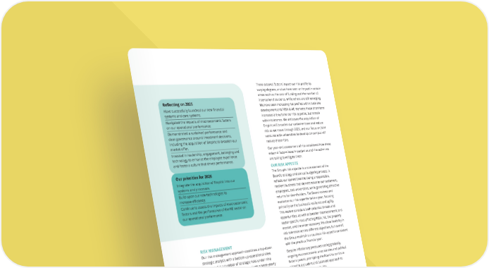 These external factors impact our risk profile to varying degrees, and we have seen an impact in certain areas such as the cost of funding and the number of international students, while others are still emerging. We have seen increasing risk profiles within both the development and PBSA & HE markets; these short-term increases are outside our risk appetite, but remain within tolerance. We anticipate the acquisition of Empiric will broaden our customer base and reduce risk as we move through 2026, and our focus on joint ventures with universities to develop on campus will reduce these risks. Our year-end assessment of risk considered how these external factors have impacted us and the action we are taking to mitigate them. OUR RISK APPETITE The Group’s risk appetite is a core element of the Board’s strategy and annual budgeting process. It reflects our commitment to being a responsible, resilient business that delivers value to our customers, employees, and universities, while generating attractive returns for shareholders. The Board reviews and evaluates our risk appetite twice a year, focusing primarily on the business’s resilience and agility. This review considers both potential threats and opportunities, as well as broader macroeconomic and sector-specific risks affecting PBSA, HE, the property market, and the wider economy. We allow flexibility in risk tolerance across different objectives, but overall, the Group maintains a cautious risk appetite consistent with the previous financial year. Despite inflationary pressures easing gradually, ongoing macroeconomic uncertainties and political factors persist, prompting the Board to continue adopting a prudent and balanced approach to managing risk and opportunity. STRESS TESTING/SCENARIO PLANNING AND OUR STRATEGIC PLAN Each year, the Board updates and refines the Group’s Strategic Plan, grounded in detailed three-year strategic and financial projections supported by scenario planning. Beyond this period, the plan extends for an additional two years using broader assumptions. The Board aligns our strategic objectives with our risk profile, identifying potential risk events that could hinder or delay the achievement of these goals. Recognising that risks often occur in combination rather than isolation, the Board conducts stress tests on these projections against various combinations of identified risks. This rigorous process results in both a base case and a stress-tested Strategic Plan. Throughout 2025, scenario planning remained a key focus, with the Board exploring a wide range of scenarios and stress tests to evaluate our readiness and resilience against challenging market conditions. RISK MANAGEMENT Our risk management approach combines a top-down strategic analysis with a bottom-up operational view. The output is a number of strategic risks under nine principal categories. The Board conducts a twice-yearly dedicated risk review. As part of this, it undertakes an assessment of the principal Group risks, including those emerging risks that would threaten our business model, future performance, solvency or liquidity as well as the Group’s strategic objectives. The Board considers both internal and external factors when assessing our risks. Alongside this, the Board also considered emerging risks and their potential impact upon the business. Looking ahead to 2026: • Geopolitical instability, including the ongoing war in Ukraine and political uncertainty during the current US presidential term. • Levels of inflation remaining above the Bank of England’s target, delaying reductions in interest rates in the short to medium term. • The health of the wider HE sector and the impact of government policies towards international students. • A weak labour market with low rising level of unemployment and decreasing numbers of job vacancies. Reflecting on 2025 Have successfully launched our new financial systems and core systems. Navigated the impacts of macroeconomic factors on our operational performance. Demonstrated a sustained performance and clear governance around investment decisions, including the acquisition of Empiric to broaden our market offer. Invested in leadership, engagement, belonging and technology to enhance the employee experience and foster a culture that drives performance. Our priorities for 2026 Integrate the acquisition of Empiric into our systems and processes. Build upon our new technologies to increase efficiency. Continue to assess the impacts of macroeconomic factors and the performance of the HE sector on our operational performance. THE UNITE GROUP PLC Annual Report and Accounts 2025 53