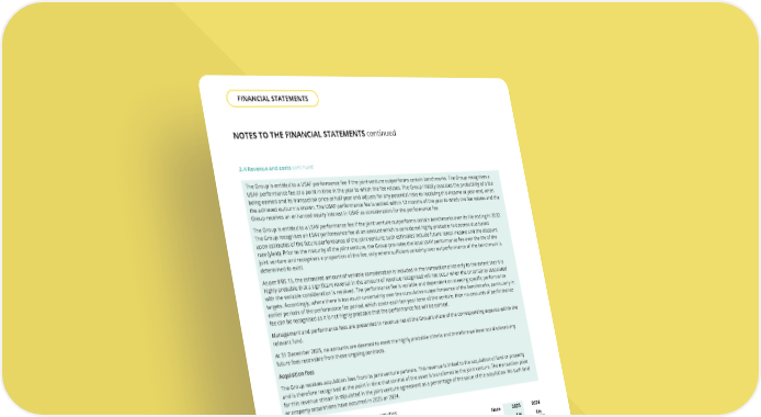 2.4 Revenue and costs continued The Group is entitled to a USAF performance fee if the joint venture outperforms certain benchmarks. The Group recognises a USAF performance fee at a point in time in the year to which the fee relates. The Group initially assesses the probability of a fee being earned and its transaction price at half year and adjusts for any potential risks to receiving this income at year-end, when the achieved outturn is known. The USAF performance fee is settled within 12 months of the year to which the fee relates and the Group receives an enhanced equity interest in USAF as consideration for the performance fee. The Group is entitled to a LSAV performance fee if the joint venture outperforms certain benchmarks over its life ending in 2032. The Group recognises an LSAV performance fee at an amount which is considered highly probable to become due based upon estimates of the future performance of the joint venture; such estimates include future rental income and the discount rate (yield). Prior to the maturity of the joint venture, the Group pro-rates the total LSAV performance fee over the life of the joint venture and recognises a proportion of the fee, only where sufficient certainty over outperformance of the benchmark is determined to exist. As per IFRS 15, the estimated amount of variable consideration is included in the transaction price only to the extent that it is highly probable that a significant reversal in the amount of revenue recognised will not occur when the uncertainty associated with the variable consideration is resolved. The performance fee is variable and dependent on meeting specific performance targets. Accordingly, where there is too much uncertainty over the cumulative outperformance of the benchmarks, particularly in earlier periods of the performance fee period, which cover each ten-year term of the venture, then no amounts of performance fee can be recognised as it is not highly probable that the performance fee will be earned. Management and performance fees are presented in revenue net of the Group’s share of the corresponding expense within the relevant fund. At 31 December 2025, no amounts are deemed to meet the highly probable criteria and therefore we have not disclosed any future fees receivable from these ongoing contracts. Acquisition fees The Group receives acquisition fees from its joint venture partners. This revenue is linked to the acquisition of land or property and is therefore recognised at the point in time that control of the asset is transferred to the joint venture. The transaction price for this revenue stream is stipulated in the joint venture agreement as a percentage of the value of the acquisition. No such land or property acquisitions have occurred in 2025 or 2024. The Group earns revenue from the following activities: Note 2025 £m Rental income* Operations segment 2.2a 307.7 Management fees Operations segment 17.3 Cladding compensation 3.5 Joint venture formation fee Property segment result 4.3 Total revenue 332.8 * EPRA earnings includes £428.2 million (2024: £398.0 million) of rental income, which is comprised of £307.7 million (2024: £282.0 million) recognised on wholly-owned assets and a further £120.5 million (2024: £116.0 million) from joint ventures, which is included in share of joint venture profit/(loss) in the consolidated income statement. The cost of sales included in the consolidated income statement includes property operating expenses of £96.8 million (2024: £86.4 million). NOTES TO THE FINANCIAL STATEMENTS continued 2024 £m 282.0 17.3 - - 299.3 THE UNITE GROUP PLC Annual Report and Accounts 2025 162 FINANCIAL STATEMENTS