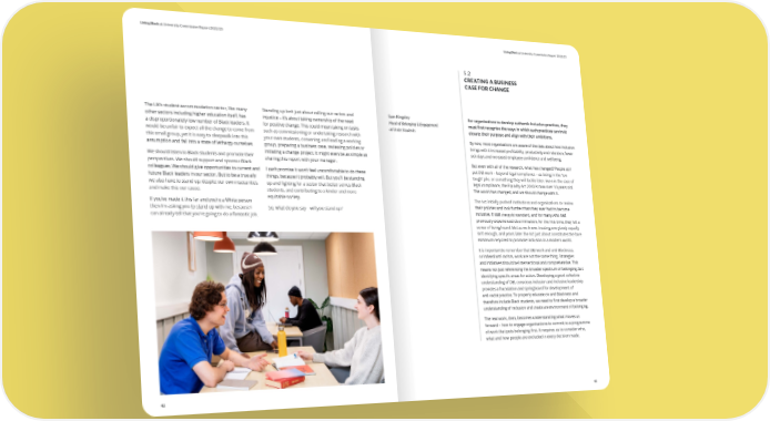 Living Black at University Commission Report 2022/23 Living Black at University Commission Report 2022/23 5.2 CREATING A BUSINESS CASE FOR CHANGE The UK’s student accommodation sector, like many Standing up isn’t just about calling out racism and Sam Kingsley For organisations to develop authentic inclusion practices, they other sectors including higher education itself, has injustice – it’s about taking ownership of the need Head of Belonging & Engagement must 昀椀rst recognise the ways in which such practices can truly a disproportionately low number of Black leaders. It for positive change. This could mean taking on tasks at Unite Students elevate their purpose and align with their ambitions. would be unfair to expect all the change to come from such as commissioning or undertaking research with By now, most organisations are aware of the data about how inclusion this small group, yet it is easy to sleepwalk into this your own students, convening and leading a working assumption and fall into a state of lethargy ourselves. group, preparing a business case, reviewing policies or brings with it increased pro昀椀tability, productivity and retention, fewer initiating a change project. It might even be as simple as sick days and increased employee con昀椀dence and wellbeing. We should listen to Black students and promote their sharing this report with your manager. But even with all of the research, what has changed? People still perspectives. We should support and sponsor Black put DEI work – beyond legal compliance – as being in the ‘too colleagues. We should give opportunities to current and I can’t promise it won’t feel uncomfortable to do these tough’ pile, or something they will tackle later. Even in the case of future Black leaders in our sector. But to be a true ally things, because it probably will. But you’ll be standing legal compliance, the Equality Act 2010 is now over 10 years old. we also have to stand up, despite our own insecurities, up and 昀椀ghting for a sector that better serves Black The world has changed, and we should change with it. and make this our cause. students, and contributing to a kinder and more If you’ve made it this far and you’re a White person equitable society. The Act initially pushed institutions and organisations to review then I’m asking you to stand up with me, because I So, what do you say – will you stand up? their policies and look further than they ever had to become can already tell that you’re going to do a fantastic job. inclusive. It was the gold standard, and for many who had previously experienced discrimination, for the 昀椀rst time, they felt a sense of being heard. But as we know, treating everybody equally isn’t enough, and years later the Act just about constitutes the bare minimum required to promote inclusion in a modern world. It is important to remember that DEI work and anti-Blackness, or indeed anti-racism, work are not the same thing. Strategies and initiatives should be intersectional and comprehensive. This means not just referencing the broader spectrum of belonging, but identifying speci昀椀c areas for action. Developing a good collective understanding of DEI, conscious inclusion and inclusive leadership provides a foundation and springboard for development of anti-racist practice. To properly educate on anti-Blackness and therefore include Black students, we need to 昀椀rst develop a broader understanding of inclusion and create an environment of belonging. The real work, then, becomes understanding what moves us forward – how to engage organisations to commit to a programme of work that puts belonging 昀椀rst. It requires us to consider who, what and how people are excluded in every decision made. 42 43