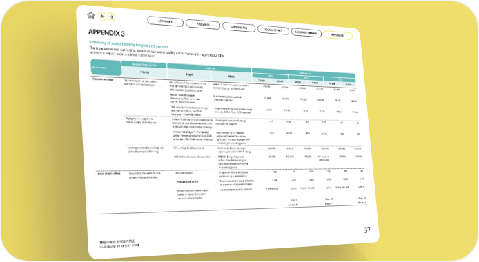 THE UNITE GROUP PLC Sustainability Report 2024 APPENDIX 3 Impact area Sustaiability priorities Ambition Performance Priority Target Metric 2022 2023 2024 Target Actual Target Actual Target Actual The environment Transitioning to net zero carbon operations and development Reduce Scope 1 & 2 emissions in line with SBTi-validated carbon target; 56% reduction by 2030 vs. 2019 Scope 1 & 2 (market-based) emissions (tonnes CO2e), vs. 2019 base year -15.27% -55.70% -20.36% -55.40% -25.45% -56.81% Source 100% renewable electricity by 2030, in line with our RE100 commitment % of electricity from certified renewable sources 71.56% 99.90% 75.12% 99.90% 78.67% 99.90% 28% reduction in operational energy intensity by 2030 vs. the 2019 base year in line with CRREM Estate wide average operational energy intensity (kWh/m2), vs. 2019 base year 127.07 115.60 118.50 111.90 110.51 111.45 Engaging our suppliers to reduce supply chain impacts Achieve 35kWh/m2 of operational energy intensity for new developments by 2030 in line with RIBA 2030 climate challenge As designed operational energy consumption, kWh/m2