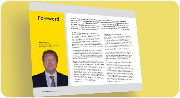 Enrolling in higher education is a key life moment for more than half of young people in the UK. Foreword Many school leavers will have been studying alongside the same people throughout their secondary education, and many of them might even have transferred from primary school to secondary school en masse. Even those with more recent experience of educational transitions, such as those who moved from a school to a sixth-form college, have generally faced nothing like the scale of transition that enrolling in higher education tends to be. The shift to higher education very often represents the The one finding that comes through repeatedly in the biggest change young people have faced in their lives pages that follow is how unequal the student experience up to that point. Moreover, applying to become a full- can be for people from different backgrounds. If equity in time undergraduate student is risky. If you manage to education is the goal – and society would clearly benefit secure the place you want, you will then likely leave your from people having more equal chances – then there is family, friends and existing support networks and quite great progress still to be made. As the new Government Nick Hillman possibly move to a city in a completely different part of finds its feet and builds its educational policy programme, the country in order to study a discipline in greater depth Ministers should consider what more can be done to Director of the Higher Education than before, while taking on a whole new level of financial deliver an education system that is fairer to those who Policy Institute (HEPI) independence. currently have to fight the hardest to overcome the There are plenty of opportunities for things to go wrong obstacles in their way. – perhaps you will struggle to click with your classmates This important report should help in this endeavour by or flatmates, perhaps you will find it challenging to live showing the sorts of actions that policymakers, the higher on the very modest maintenance support available and / education sector and applicants themselves can take to or perhaps you will find the shift to a more independent make the transition to higher education less fraught – learning style challenging. and to help guarantee success after enrolment. Each year, as confirmed by the separate HEPI / Advance Finally, one reason why this survey of applicants is HE Student Academic Experience Survey, some people so important is that we know less about the applicant discover they have not made as wise a choice as they had experience than we do about people’s experiences hoped. They may not have had good enough information while they are school pupils or university students. when applying or they may have matured as an individual So I congratulate Unite Students for not only shining a in the months between applying and enrolling – or spotlight on the applicant journey but also for doing so something might have changed with the course or consistently year after year, thereby building up a useful institution that originally appealed to them. When such longitudinal picture. The annual nature of the survey things happen, more resilient students, typically those allows for incremental adjustments as well as changes with more confidence and from better-off backgrounds, to those areas covered in more depth. This year, there are better able to cope. Others, such as those who are is a notable focus on international students alongside estranged from their families, are less likely to have the home students, raising many instructive similarities and networks that serve as a safety cushion. differences between these two groups that have not been much discussed in detail before. Unite Students | Applicant Index Report 5