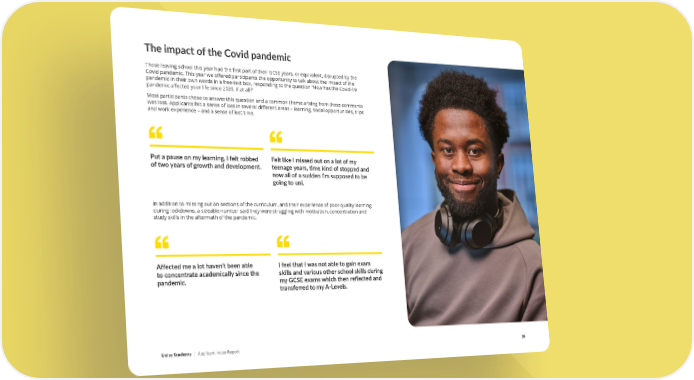 The impact of the Covid pandemic Those leaving school this year had the first part of their GCSE years, or equivalent, disrupted by the Covid pandemic. This year we offered participants the opportunity to talk about the impact of the pandemic in their own words in a free-text box, responding to the question “How has the Covid-19 pandemic affected your life since 2020, if at all?” Most participants chose to answer this question and a common theme arising from these comments was loss. Applicants felt a sense of loss in several different areas – learning, social opportunities, trips and work experience – and a sense of lost time. Put a pause on my learning, I felt robbed Felt like I missed out on a lot of my of two years of growth and development. teenage years, time kind of stopped and now all of a sudden I’m supposed to be going to uni. In addition to missing out on sections of the curriculum, and their experience of poor-quality learning during lockdowns, a sizeable number said they were struggling with motivation, concentration and study skills in the aftermath of the pandemic. Affected me a lot haven’t been able I feel that I was not able to gain exam to concentrate academically since the skills and various other school skills during pandemic. my GCSE exams which then reflected and transferred to my A-Levels. Unite Students | Applicant Index Report 29