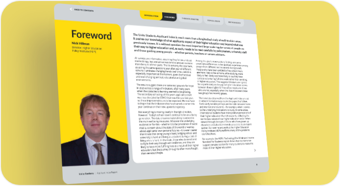 Foreword All surveys are informative, assuming they follow a robust methodology, but annual surveys tend to amount to more than the sum of their parts. That is certainly the case here, as asking the same questions year after year of different cohorts illuminates changing trends over time – which is especially important at the moment, given the fractious and ever-changing political, educational and global environments. The results suggest there are some real grounds for hope in 2025 across a range of indicators, after many years when the obstacles to learning seemed to be growing. The secondary schooling of this year’s applicant cohort was less disrupted by COVID than was the case last year, so these improvements are to be expected. We now have to hope that the indicators that have turned a corner this year continue on their new upwards trajectory. Not everything is moving clearly in the right direction, however. Today’s school leavers continue to be an unlucky generation. The data show no material improvement in the main wellbeing measures. Whatever the underlying explanation for this – whether it is the prevalence of social media, concern about the state of the world or worries about applicants’ own personal futures – it is even clearer than it was that being young is hard, bridging school and university is hard and living as a student during a cost-of- living crisis is hard. In the main, those who do enrol tend to fight their way through with resilience, and they are likely to have more fulfilling lives as a result of their higher education, but the journey through is often more fraught than we would hope. Among this year’s more salutary findings are some unwelcome differences in the applicant experience among people from different socioeconomic backgrounds. People who have been entitled to free school meals are more likely to live at home while studying, more likely to feel lonely and more likely to say they have considered entering full-time work rather than enrolling in higher education. This suggests Ministers are right to focus particularly on the gap in higher education access between those eligible for free school meals and those who are not, especially when the chasm between these two groups has recently grown. The new data obtained from the Applicant Index are cut in other informative ways too in the pages that follow. Particularly notable perhaps are the splits between home and international students – for example, when it comes to the underlying motivations to study. In some areas, international students have more positive perceptions of their higher education than UK students, reflecting the world-class nature of our higher education sector when viewed through the eyes of those who have grown up elsewhere and also its tremendous success as an export earner. Our own recent work at the Higher Education Policy Institute (HEPI) reaffirms many of the problems identified here. For example, the HEPI / TechnologyOne Minimum Income Standard for Students report shows that maintenance support remains too low for many students to make the most of their higher education. Nick Hillman Director, Higher Education Policy Institute (HEPI) The Unite Students Applicant Index is much more than a longitudinal study of well-trodden areas; it pushes our knowledge of what applicants expect of their higher education way beyond what was previously known. It is without question the most important large-scale regular survey of people on their way to higher education and, as such, needs to be read carefully by policymakers, university staff and those guiding young people – whether parents, teachers or careers advisers. FOREWORD Unite Students | Applicant Index Report 5 INTRODUCTION THEMATIC ANALYSIS METHODOLOGY TOPICAL ISSUES BACK TO CONTENTS