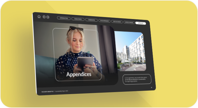 THE UNITE GROUP PLC | Sustainability Report 2025 30 In the appendices, we provide fuller details of the data we disclose on sustainability for reporting purposes. Appendices INTRODUCTION YOUNG PEOPLE COMMUNITIES THE ENVIRONMENT APPENDICES LOOKING FORWARD OUR COLLEAGUES